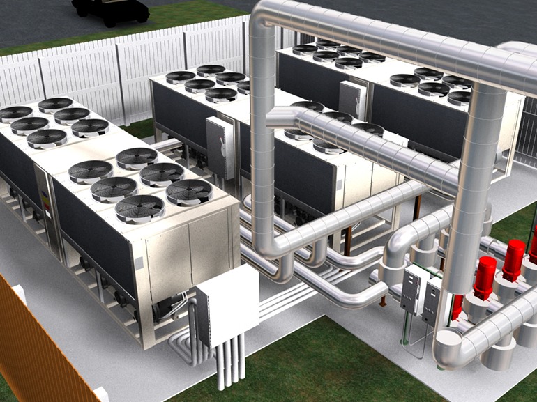 An air-cooled fluid cooler (also sometimes called an air-cooled heat exchanger or dry cooler) is a device used to remove heat from a fluid (usually water, glycol, or oil) without the use of water-based cooling towers. Instead, it uses ambient air to cool the fluid via a heat exchanger and fans.